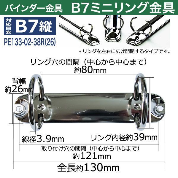 B 7縦ミニリング金具 PE 133 02 38 R 26 サイズ 長さ130 mm 背幅26 2穴 材質 鉄 30本入1袋