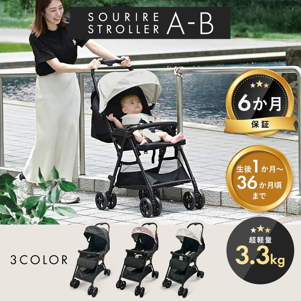 アイリスプラザ AB型 ベビーカー 超軽量 片手で簡単折りたたみ 折りたたんだ後も自立 5点式シートベルト サスペンション付 無段階リクライニング エクリュー