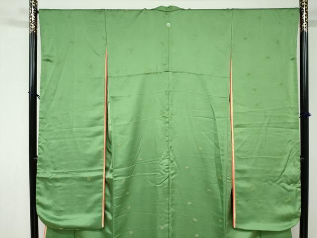 平和屋着物 豪華振袖 寿光織 舞桜文 淡黄色 金糸 反端付き 十二単風 正絹 ud