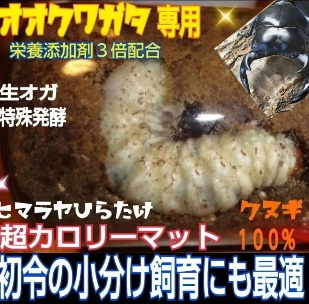 (当然、ヘラクレスなど外産、国産のカブトムシも大きくなります) ヒマラヤひらたけ菌が回った生オガを微粒子にし特殊発酵したマットに栄養添加剤を通常の3倍配合してあるので抜群の栄養価です。