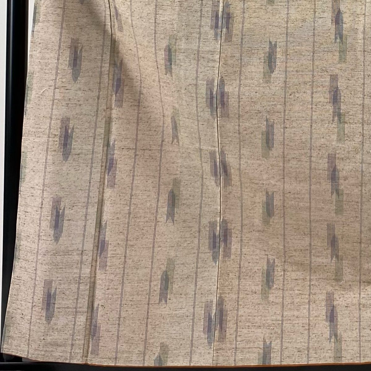 紬 身丈161 cm 裄丈62.5 S 袷 竹田省二 ぜんまい紬 落款 矢羽 縞 薄茶色 正絹