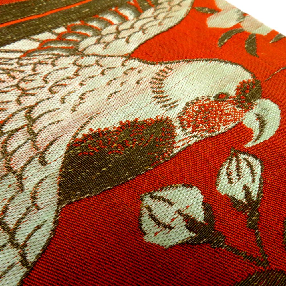 希少!! セキセイインコのような鳥のデザインで渋カワイイ! オレンジ地に紫がインパクト大。羽ばたく鳥や花がオシャレ・レトロな雰囲気の昔子供帯です。