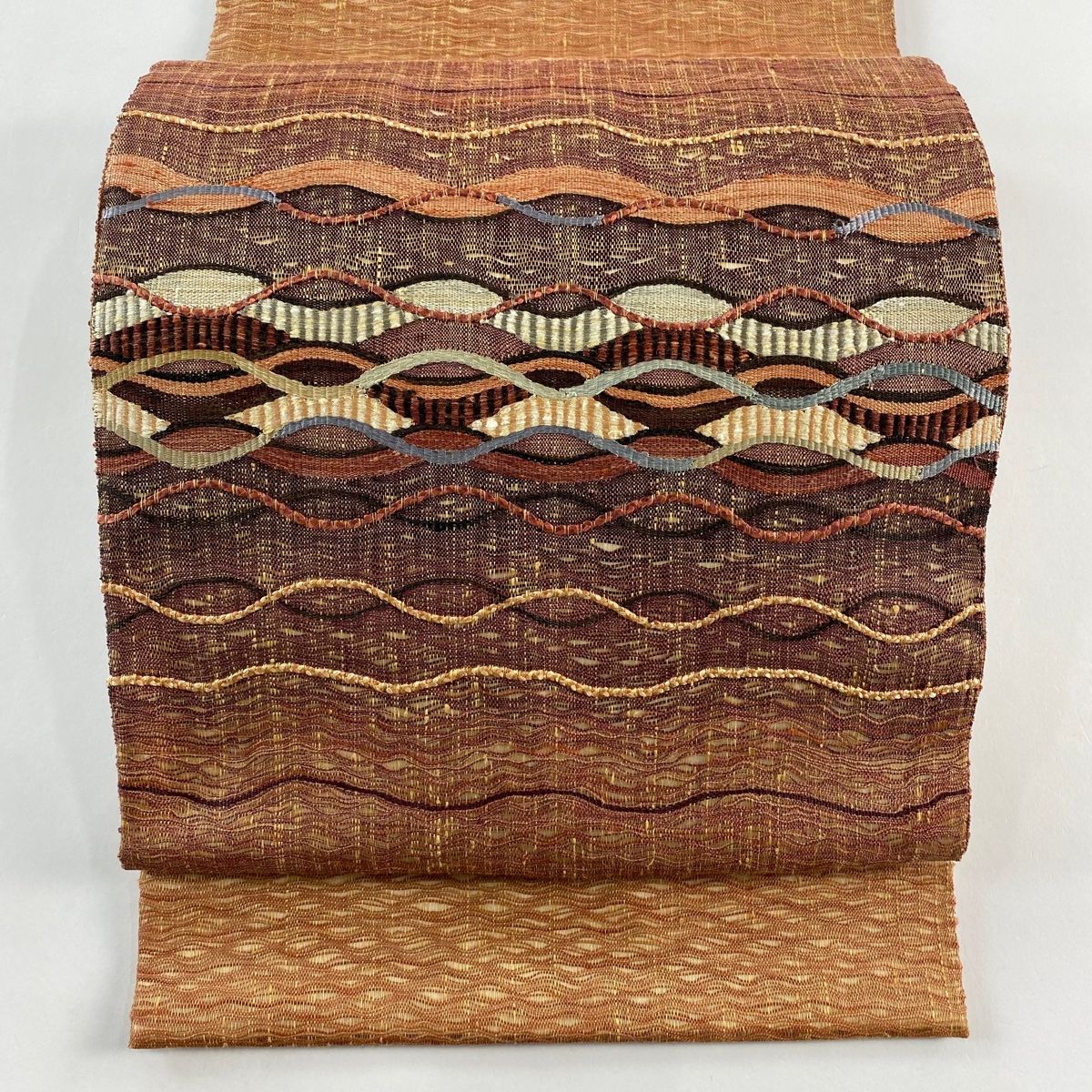 袋帯 秀品 よろけ縞 赤茶 お太鼓柄 正絹