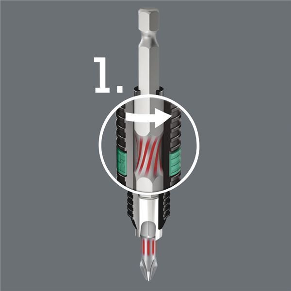 ■DINISO1173-C6.3およびE6.3準拠の1/4インチ六角ヘッドドライブ付きビットの取り付けに、電動ドライバーや電動ドリルのチャックに挿入して使用することができます。