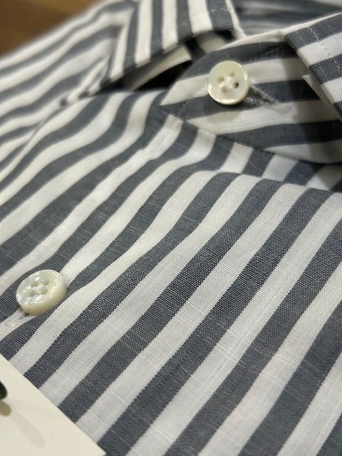 コットン100%でありながら、まるでリネンが入っているかのような涼しげで軽やかな生地感が特徴のシャツです。