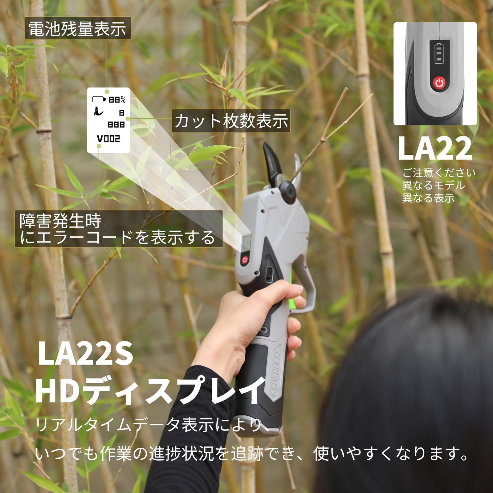 Laecabv 電動剪定バサミ 切断径22mm 充電式剪定ばさみ 園芸 庭木 果樹 農家 太枝切 電動剪定鋏は 園芸用具 超軽量で関節炎患者に適している (LA22S)