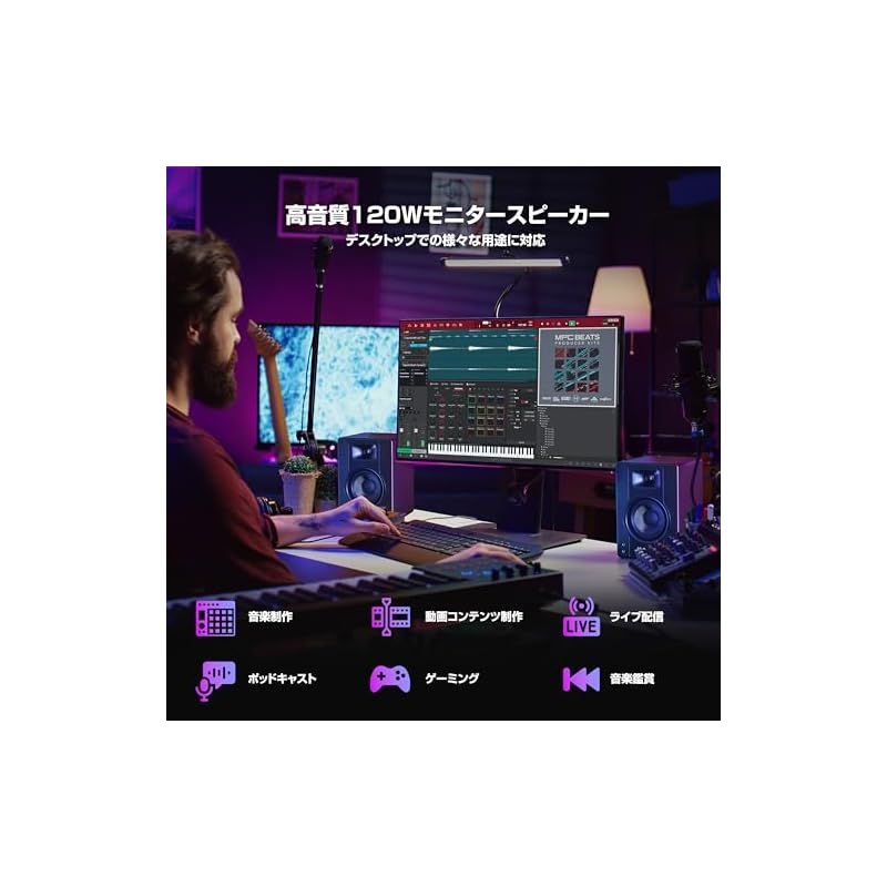 プロフェッショナル・クオリティのスタジオモニタースピーカー - モニタースピーカーのサウンドクオリティを実現し、ゲーミング、音楽制作、Podcast/ライブ配信、DJプレイなどに最適な120Wパワードスピーカー