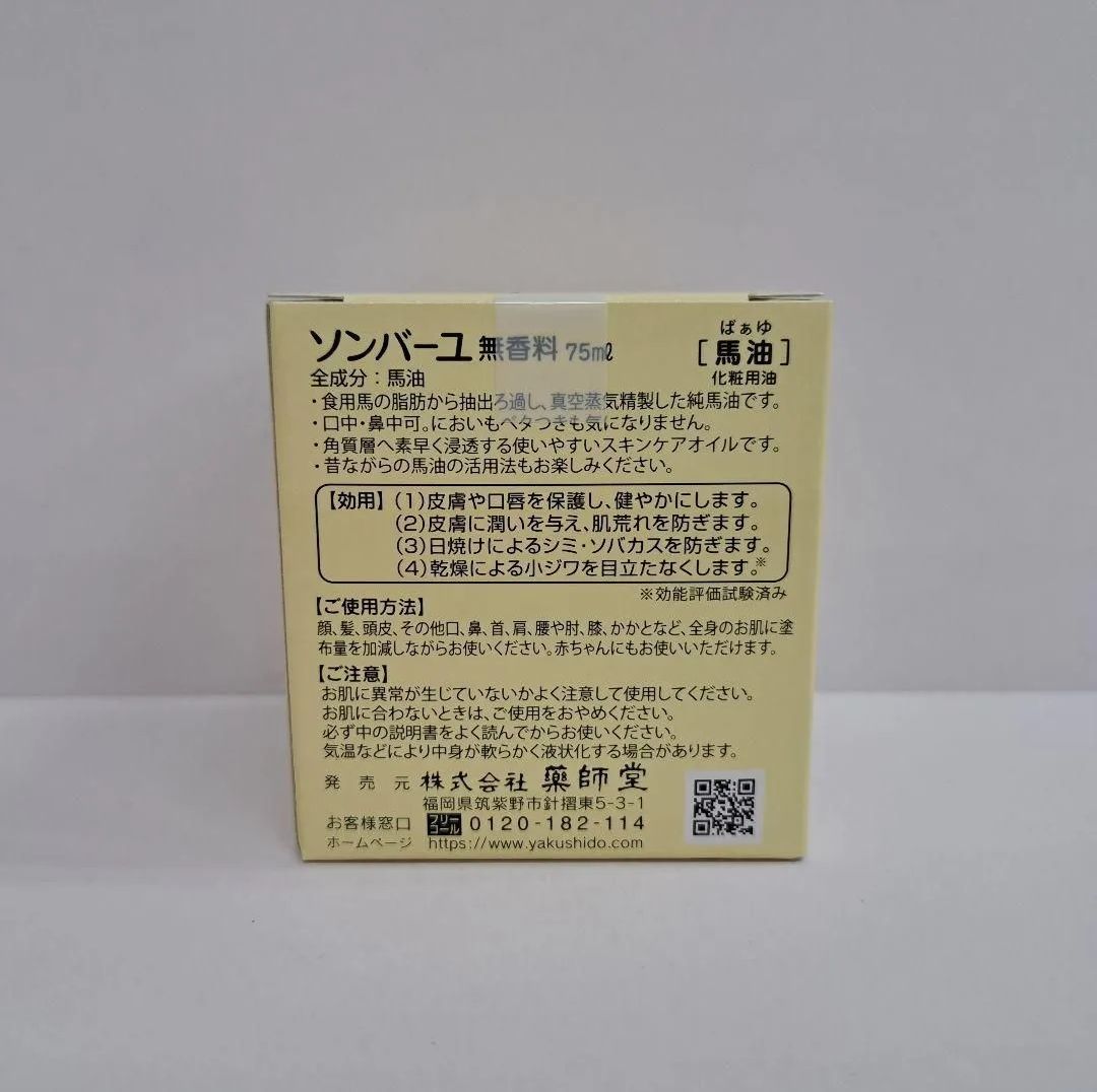 ・中国伝来の馬の油のすばらしい効能に着目し、独自の技術で油臭を除去した元祖「馬油」。馬油100%、無添加・無香料のソンバーユを代表する製品です。