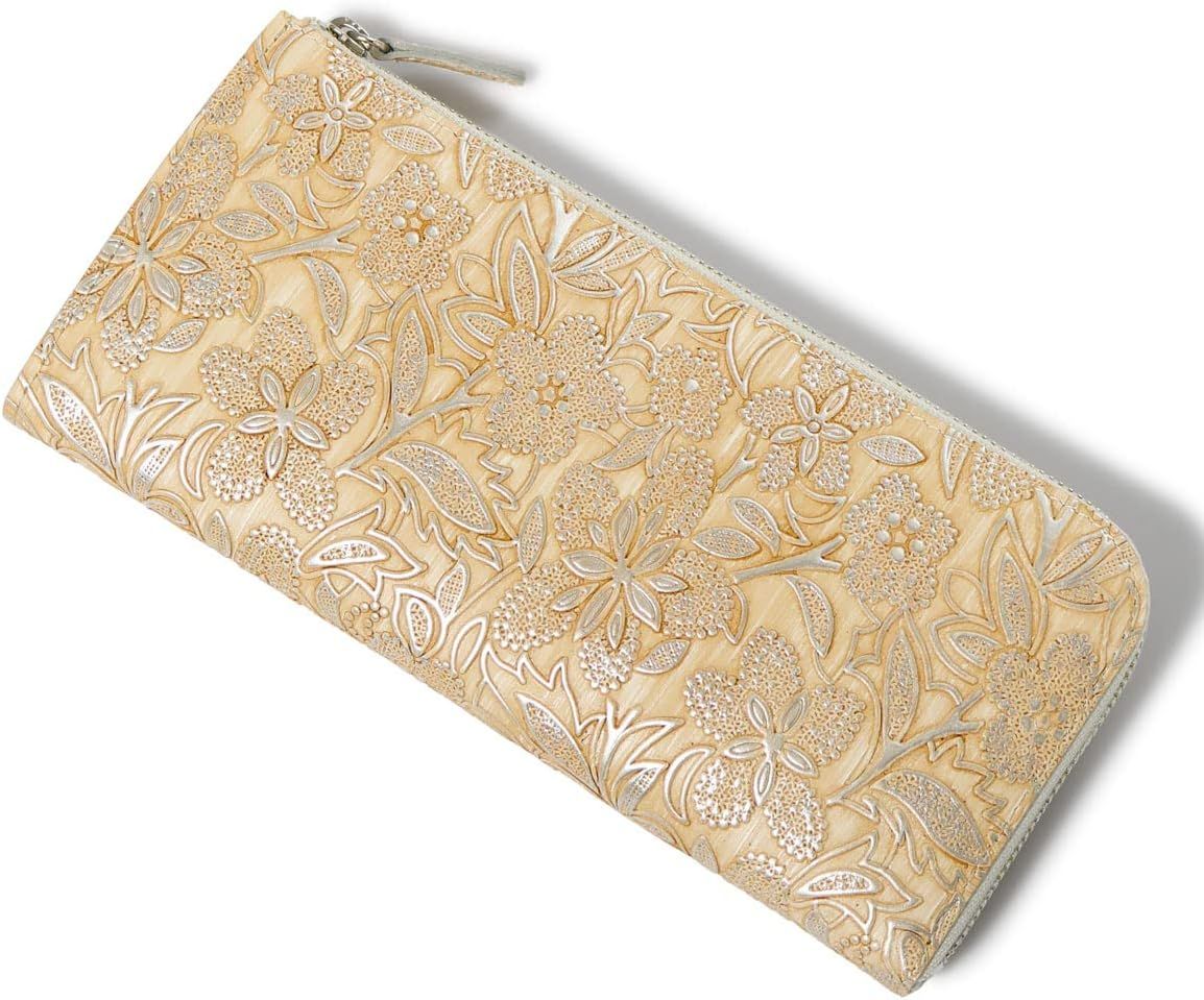 から発送 アルカン 長財布 L字ファスナー 本革 レディース ク 1416-660 薄型 花柄 パール 型押し エンボス 牛革 レザー 11 ベージュ