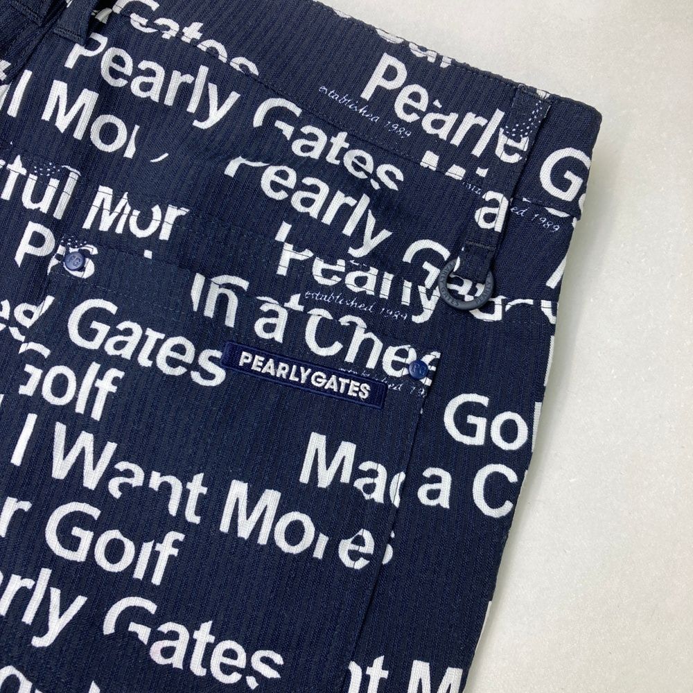 サイズ 2 PEARLY GATES パーリーゲイツ モデル ストレッチ ショートパンツ ロゴ総柄 ネイビー系 ゴルフウェア レディース ストスト
