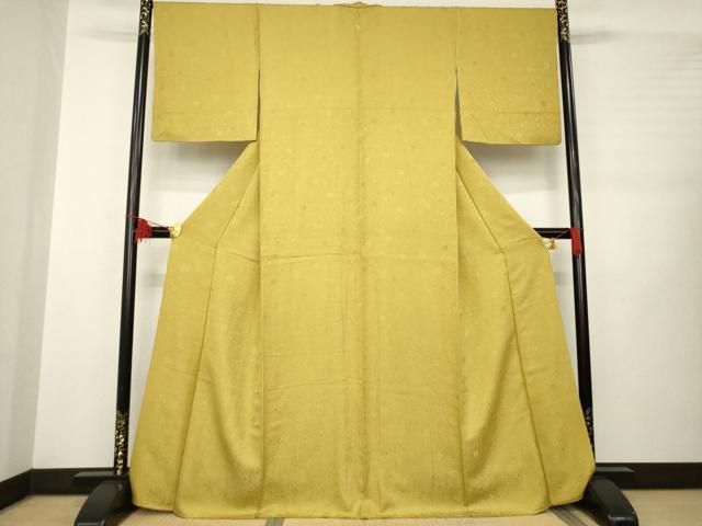 平和屋着物 上質な色無地 草花地紋 山吹茶色 正絹 ck