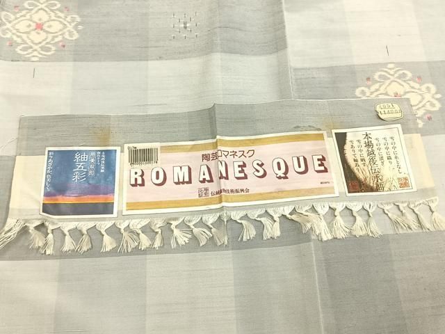 平和屋着物 本場越後伝承紬 単衣 吉祥花文 反端付き 正絹 fy