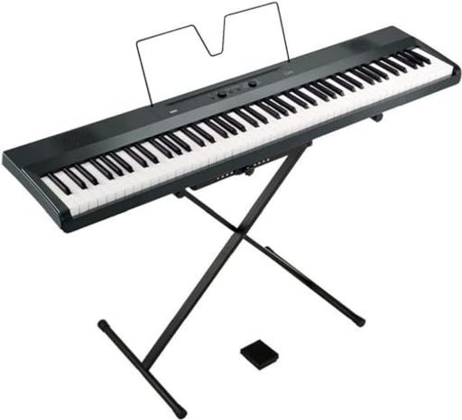 ペダル、譜面立て、専用スタンド付属。