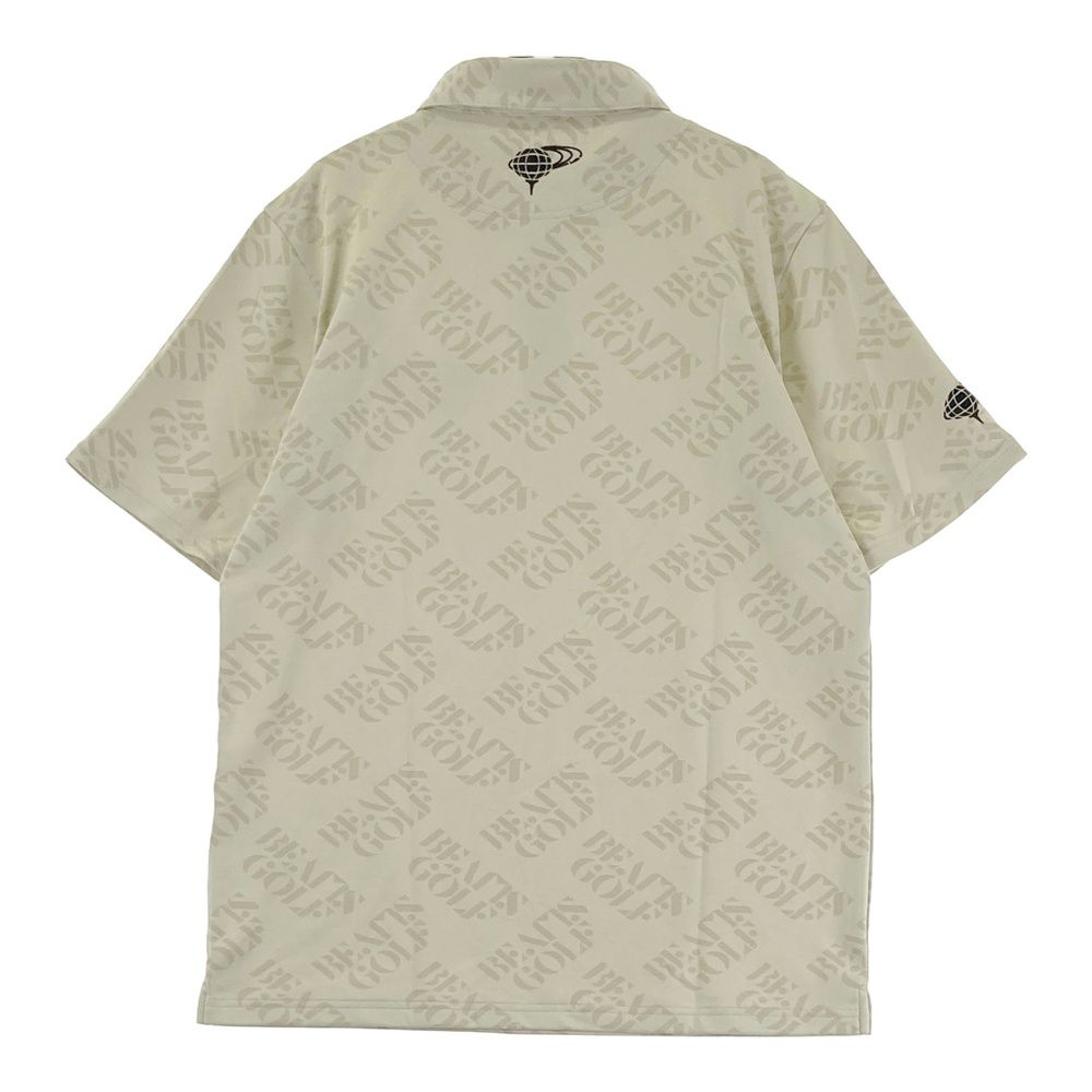 サイズ L BEAMS GOLF ビームスゴルフ モデル 半袖ポロシャツ ロゴ総柄 ベージュ系 ゴルフウェア メンズ ストスト